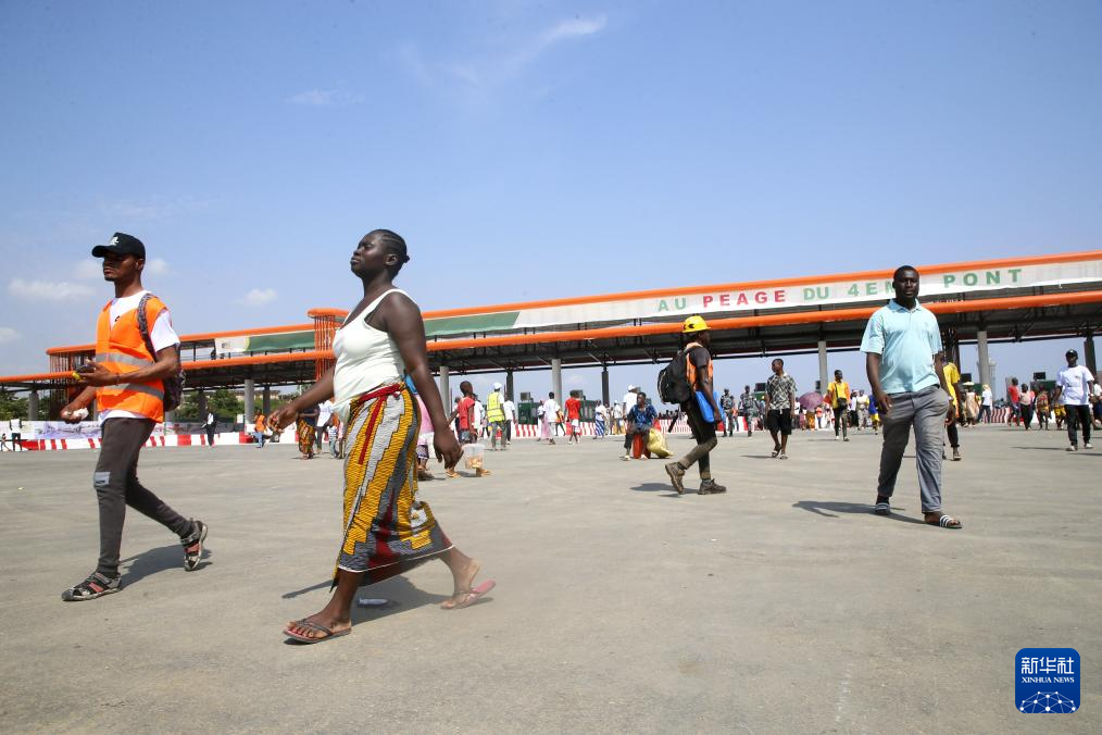 1月10日,人们经过科特迪瓦阿比让四桥项目的收费站。