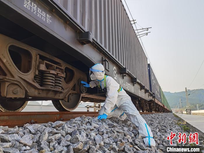 图为民警正在对班列进行查验。 磨憨出入境边防检查站供图