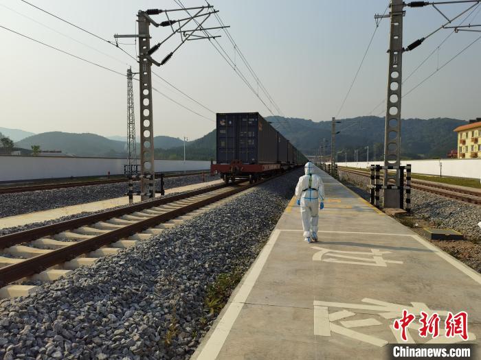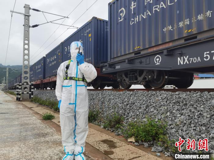 图为民警正在迎接班列进入查验区。 磨憨出入境边防检查站供图