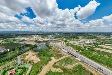 金港高速公路连接柬埔寨首都金边和最大深水海港西哈努克港(西港),是中国路桥投资的建造-运营-移交项目,采用中国设计及质量标准,全长187.05公里,建成后两地车程将由5小时缩短至2小时以内。